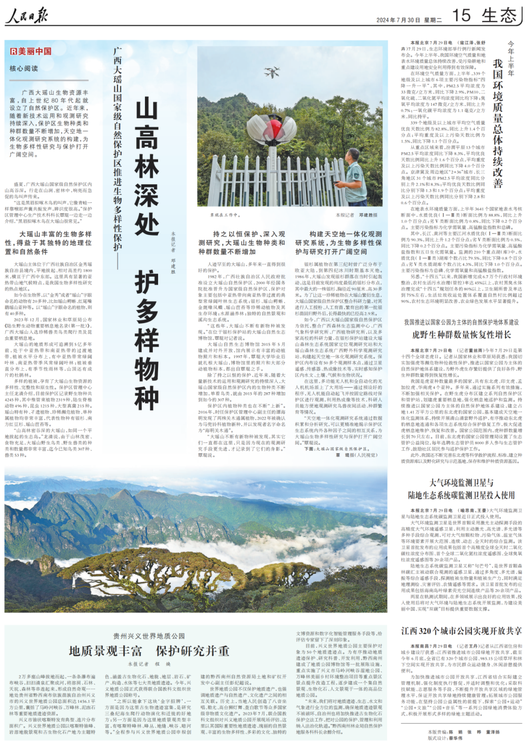 《人民日报》报道|云圣智能助力广西大瑶山自然保护区推进生物多样性保护
