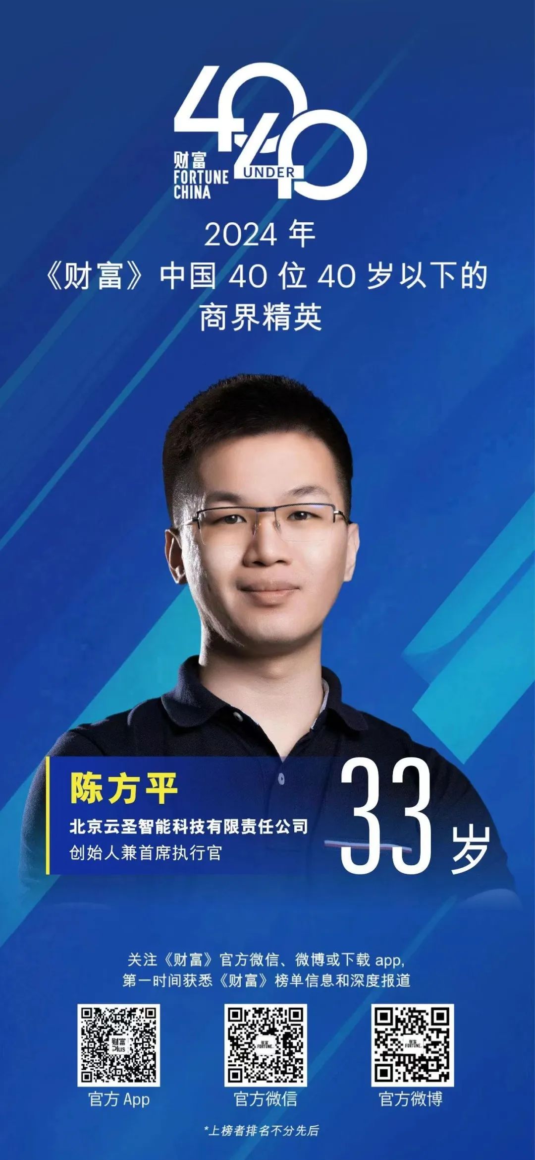 中国40U40评选于2011年由《财富》杂志推出,旨在挖掘中国年轻一代的杰出创新者、价值缔造者和变革者,被业界称为“商业巨星摇篮”,是国内最具影响力的年轻商业领袖权威评选,主要关注国内40岁以下的商业精英,本次同期入选的商界精英还包括月之暗面Kimi创始人兼首席执行官杨植麟,米哈游联合创始人、总裁兼董事长刘伟等人。