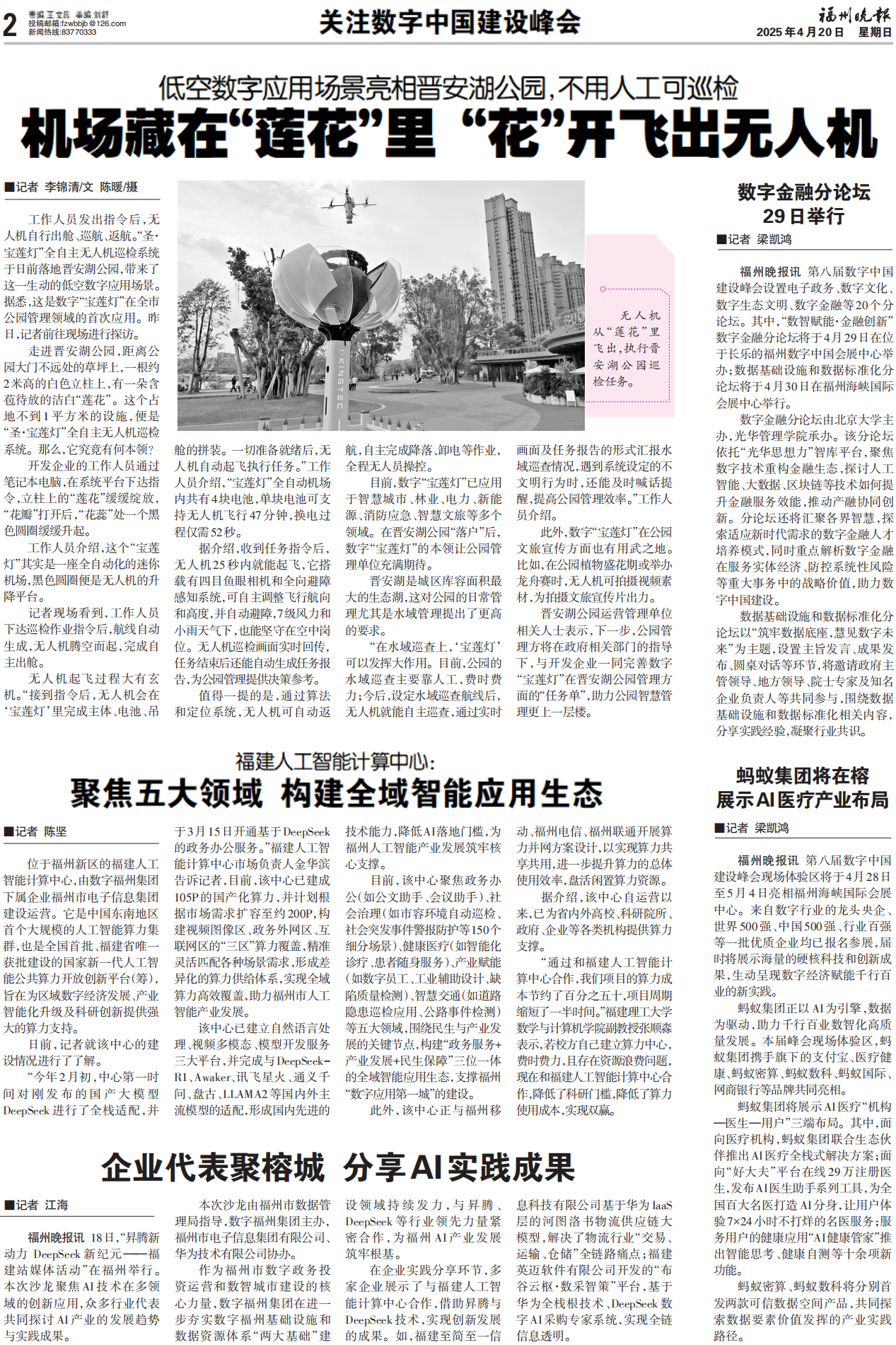 《福州晚报》报道|低空数字应用场景亮相晋安湖公园,不用人工可巡检