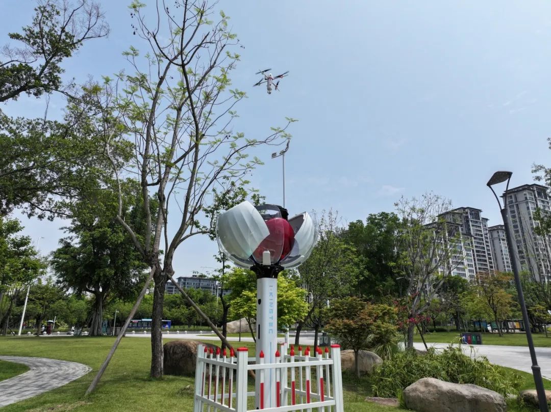 公园工作人员介绍,目前公园的水域巡查主要靠人工,费时费力;应用云圣智能圣·宝莲灯全自主无人机巡检系统设定水域巡查航线后,无人机就能自主巡查,通过实时画面及任务报告的形式汇报水域巡查情况,遇到系统设定的不文明行为时,还能及时喊话提醒,提高公园管理效率。此外,数字“宝莲灯”在公园文旅宣传方面也有用武之地。比如,在公园植物盛花期或举办龙舟赛时,无人机可拍摄视频素材,助力文旅宣传片拍摄。