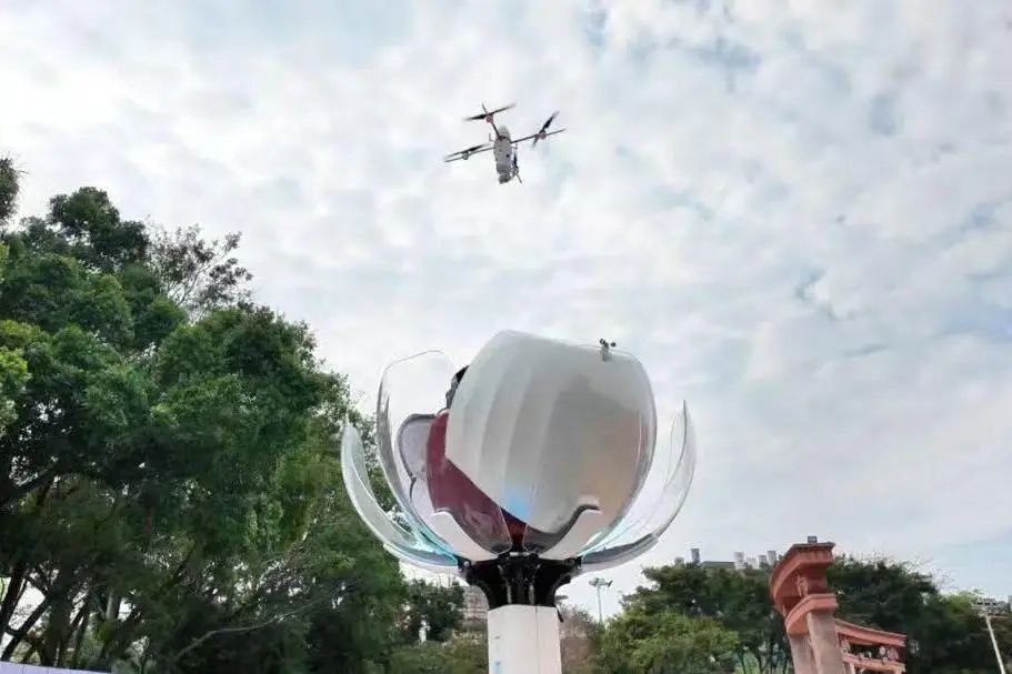 优美的莲花造型和景区完美融合,成为文化广场的热门打卡点。圣·宝莲灯全自主无人机巡检系统不仅能够实时监测景区人流、守护景区设施与环境安全,自动起飞、换电、规划航线,还能自主生成巡检报告。