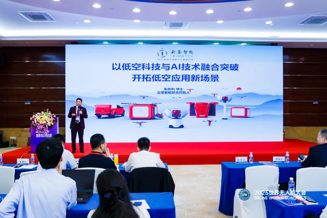 当天下午,在2025空天技术未来产业创新发展论坛上,朱胜利博士再度登台发表《以低空科技与AI技术融合突破开拓低空应用新场景》主旨演讲,与多位院士专家一道探索空天技术的创新和发展,为低空经济行业发展建言献策。