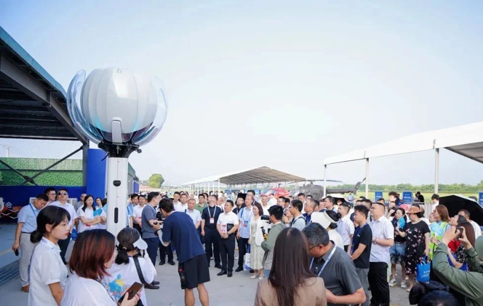 博览会现场,屹立在嘉宾入口处的“宝莲灯”全自动机场成为全场焦点。随着机场“花瓣”打开,圣工业无人机自主起飞升空,执行预设巡检任务,其高效、智能、稳定的表现吸引了众多领导嘉宾的驻足欣赏,现场赞叹与好评不断。